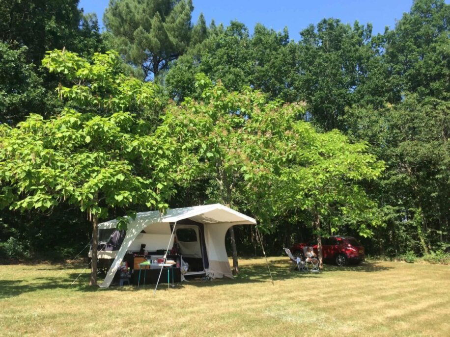Domaine Troteligotte is een kleine natuurcamping op een voormalig boerenlandgoed in het zuiden van Frankrijk. Verscholen tussen bosranden, boomgaarden en glooiende weilanden kampeer je hier zoals kamperen ooit bedoeld was: stil, groen en persoonlijk. Het terrein van bijna twee hectare biedt volop ruimte en rust. Geen rijtjes, geen drukte, alleen vogels, zonlicht en misschien een ree in de ochtend.